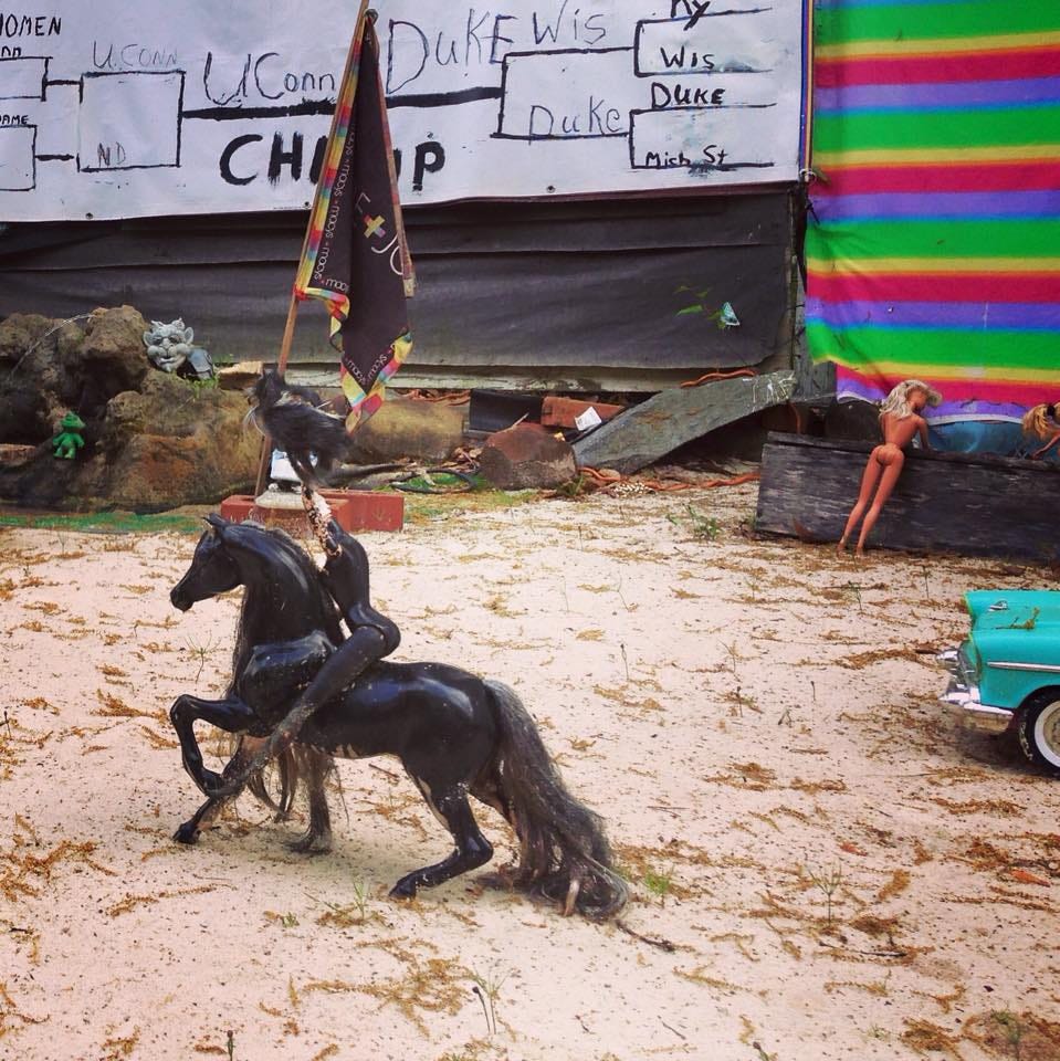 The goings on at Barbie Beach are dictated by whatever’s going on in the world, limited only by the imagination of its creators, which they reveal gets wilder after a few beers. They’ve had alien invasions, dragons and mermaids drop by as well as more prosaic events like Pride (‘…it gives our detractors something to think about’), Hurricane Katrina (‘we evacuated the whole beach, there was nothin down there, absolutely nothin’) or the Pink Posse Walk, to raise dollars for breast cancer charities. They have helped fundraise over $200,000. To the Quicks, Barbie Beach is a way to have fun, express themselves, ‘stir the pot’, and a form of freedom of speech. The explanation for the nakedness of the barbies is simple - because ‘The first thing a child does when they get a new Barbie is take the clothes off’. Uh huh.