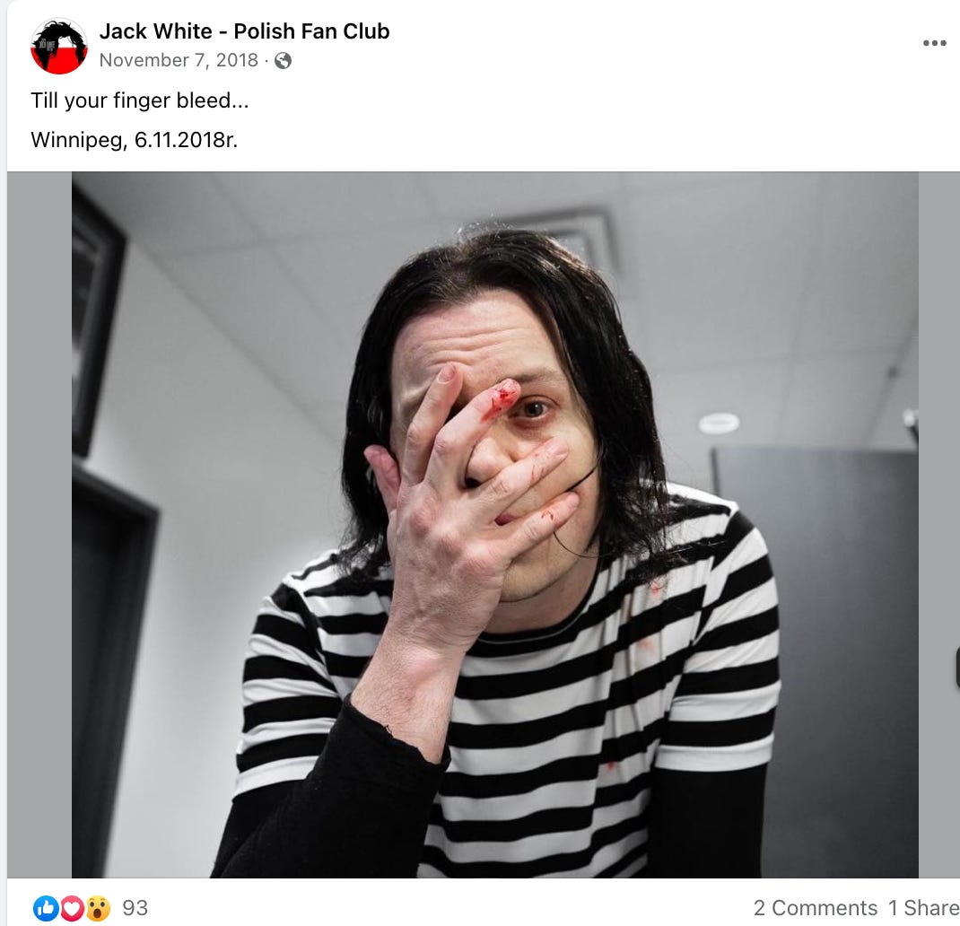 As some random dude on Reddit stated about Jack White’s guitar: ‘I have to admit that his white guitar covered in blood is a damn cool look.’ Jack told Rolling Stone “Sometimes onstage I’m like, ‘Why the fuck am I bothering? Why am I pushing myself so hard?’ The next act on the festival is playing the same set they played the night before in the same way and having a blast. And I’m sweating bullets and bleeding all over the stage. It’s hard to know if it’s worth it.”
