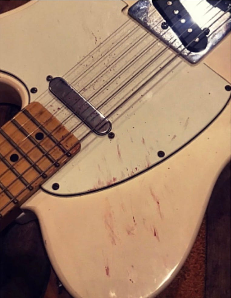 At our gig the next night, I pretty quickly ripped them open again - probably while playing our new single ‘Half Girl Half Beast’ - and by the end of the show my fret board was covered in blood spatter, of which I felt strangely proud. A rock’n’roll rite of passage.